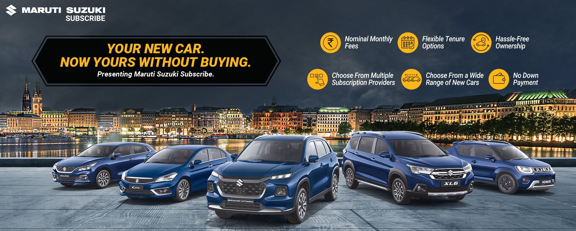 Located in Thane, Supreme Automobiles offers a plethora of options of Nexa cars for Maruti Suzuki Subscribe. You can choose your desired Maruti Suzuki car and drive it home at nominal monthly fees for a variety of flexible tenure periods. Whether you prefer Hatchback, Sedan, SUV or even MUV you are sure to find it at Supreme Automobiles, Naupada with an easy Maruti Suzuki Subscribe plan.
